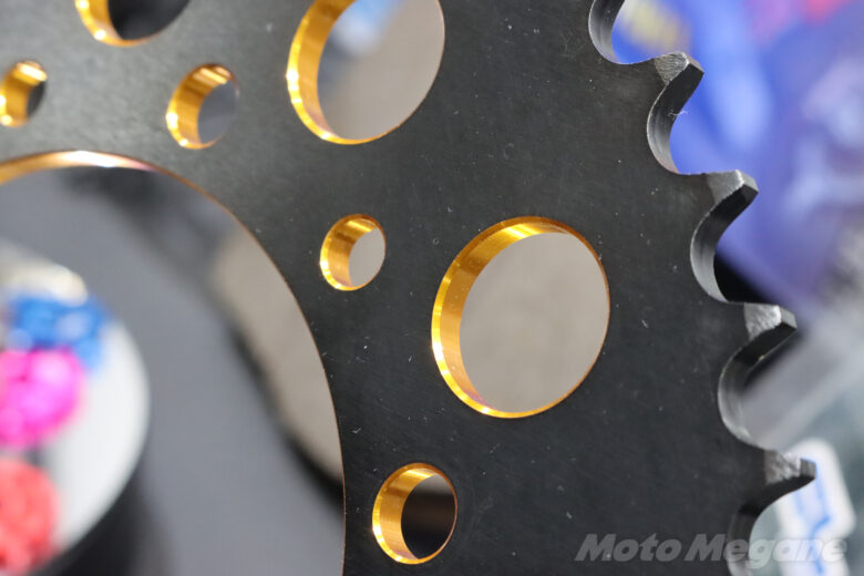 80年代後半から巻き起こったカスタムブームの中、雑誌の特集を飾ったカスタム車は必ずと言って良いほどゴールドのスプロケットを装着していた。そんなゴールドスプロケットを現代の加工技術で生産し、ラインナップしている。