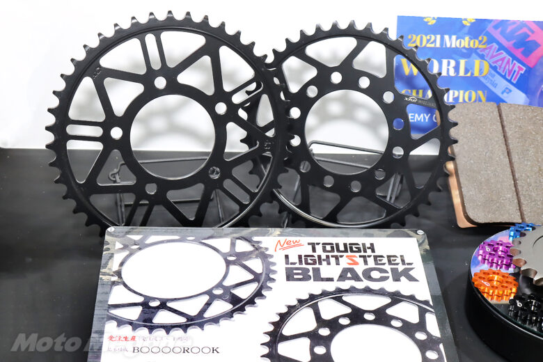 「タフライトスチールブラック」は、タフライトスチールの上から塗装を施しており、受注生産品となる。ブラックのスプロケットは愛車の足回りを引き締めてくれるはずだ!