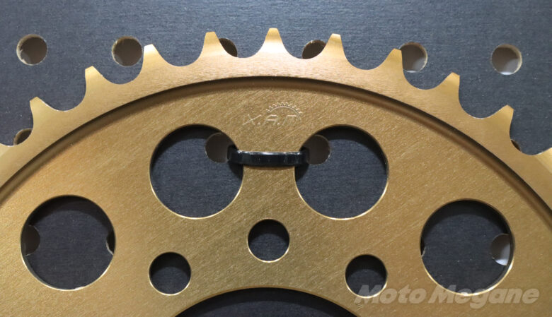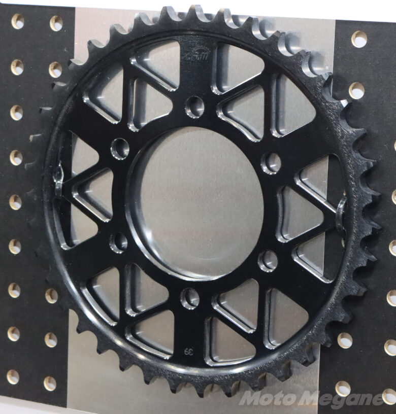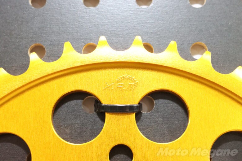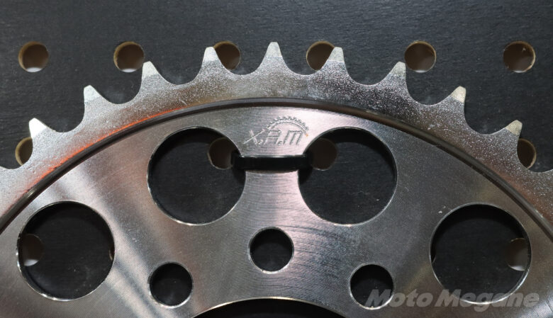 見た目は純正よりも随分洗練されているが、素材はスチールで歯先に高周波焼き入れ処理が施されており、耐久性は純正を上回る。初めて社外スプロケットを使ってみるという人にもおすすめの商品だ。