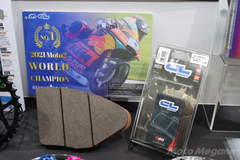 X.A.Mではロードレース向けからスポーツ車向け、小排気量車向けからスクーター向け、さらにオフロード向けなどなど幅広いバリエーションを持つブレーキパッド「CL BRAKES」の取り扱いも行なっている。