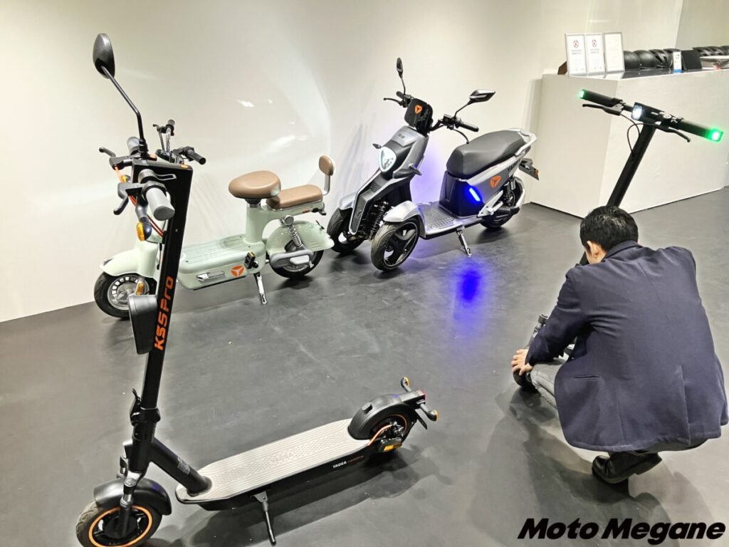 そして、他にも電動アシスト自転車や原付二種の三輪モデルなど今まで展示会などでは見たことのない機体も展示!