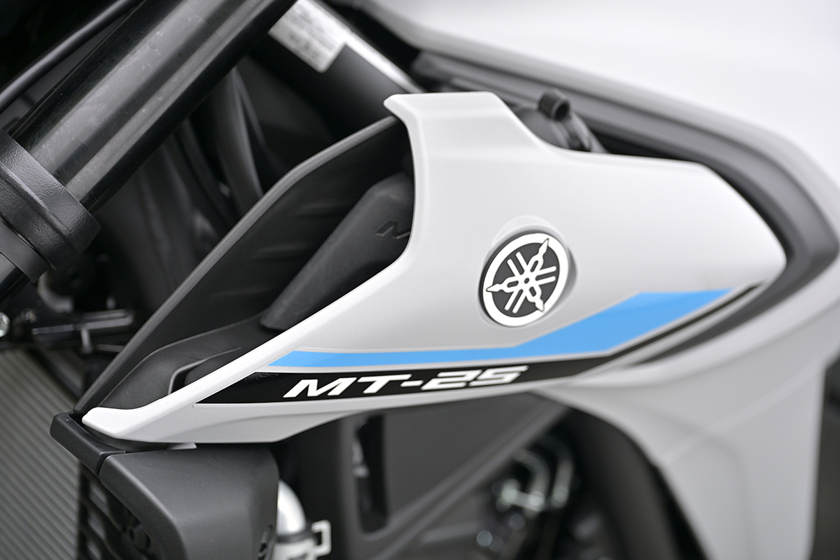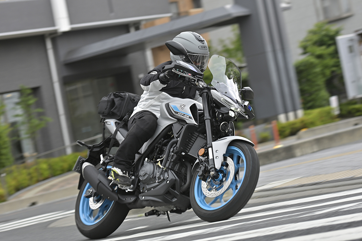 MTシリーズのエントリーモデルと位置付けられているが、近未来感あるスタイリングや軽快な走りは幅広いスキルのライダーに受け入れられるもの。そして細部を磨き上げた2025年モデルをベースに、ツーリングユースに最適な純正アイテム5点を標準装備としたパッケージ仕様車「MT-25 ツーリング」が設定された。