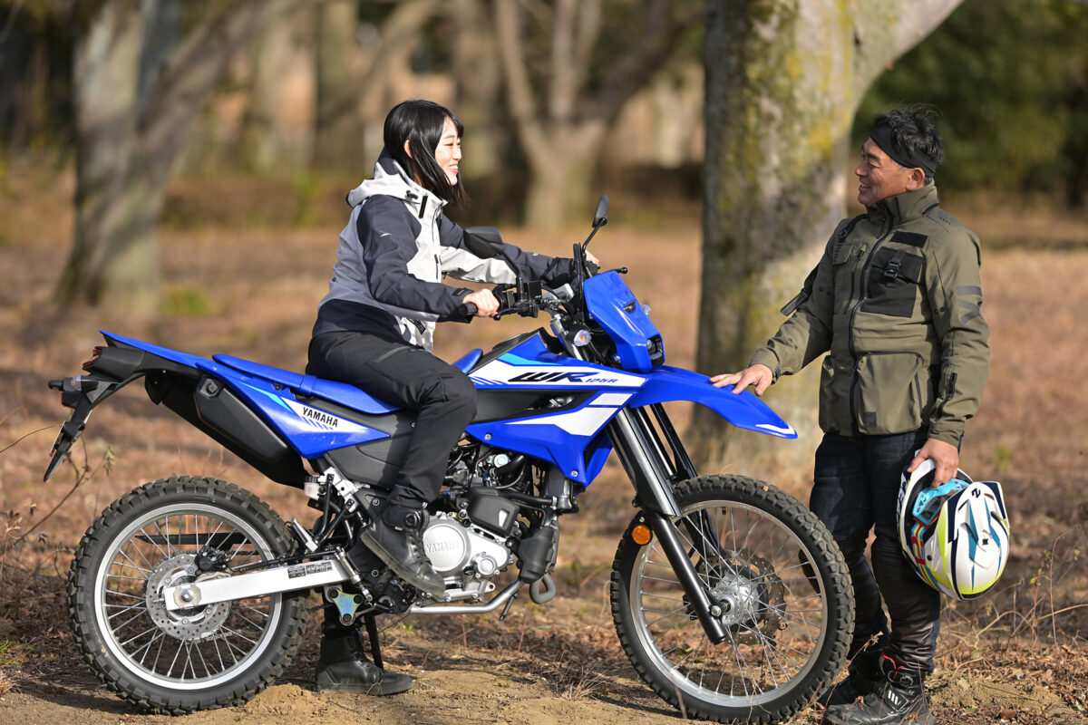 WR125Rをいろいろな角度で見た結果、伝わってきたのは「オフロード走行に対する本気度の高さ」だ。コンセプトは「オフロード走行と日常的な扱いやすさを両立」とのことだが、その割合がオフロード8割、市街地2割くらいなんじゃないかと感じるほど。一緒に各部をチェックした桜井つぐみさんとも「これは絶対にオフロード走行が楽しいバイクだよね!」と意見が一致した。