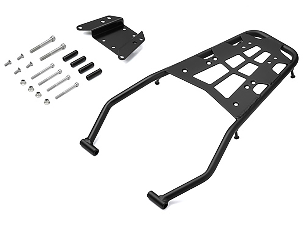 これを取り付ければ後部にフックポイントができ、荷物を安定して積載することができる。汎用トップケースの装着が考慮されていたり、タンデムで役立つグラブバーとしても使える高機能キャリアだ。