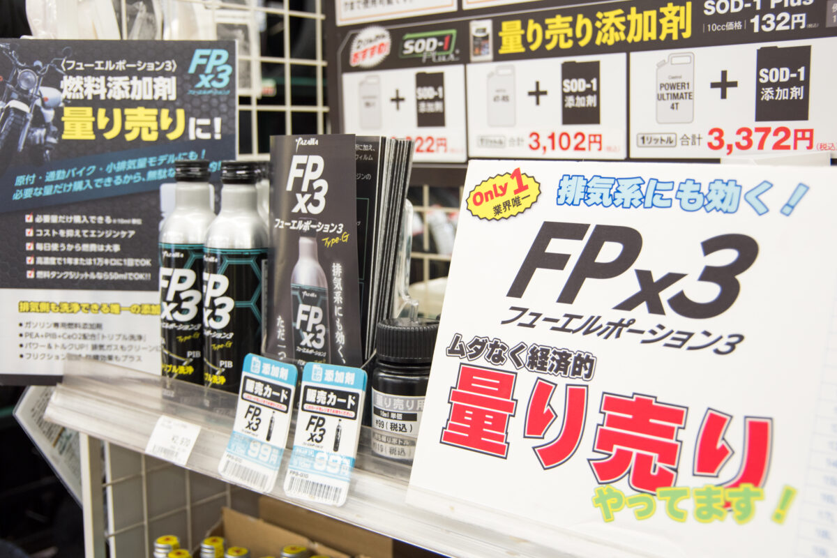 フューエルポーション3はこの一本で、主に3つの効果を発揮する高性能な添加剤だ。