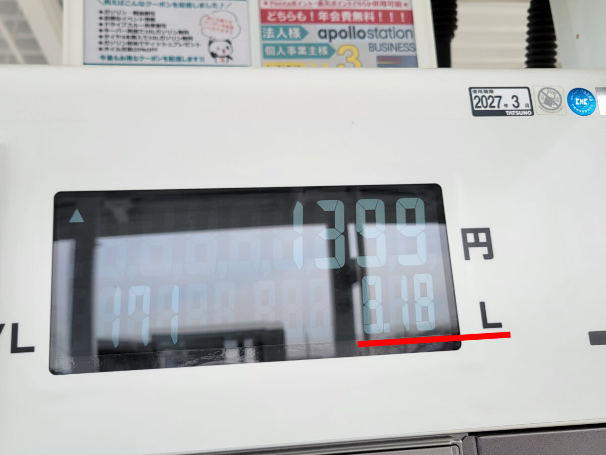 走行距離226.7km ÷ 給油量8.18L = 燃費 27.71km/L