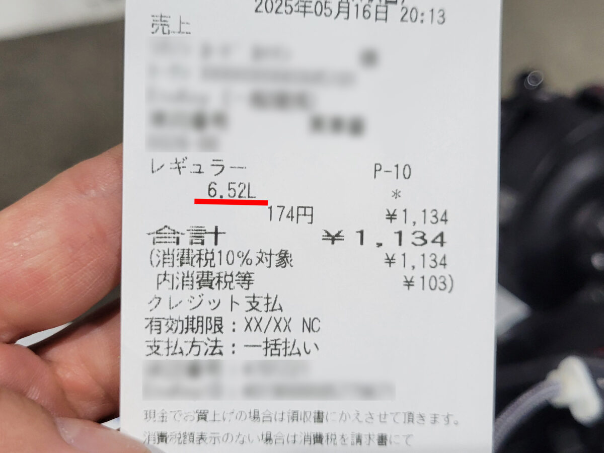 ちなみに、フューエルポーション3を入れる前の燃費を満タン法で計測したところ、