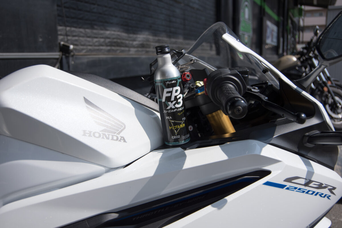 さて、百聞は一見に如かず。このフューエルポーション3を、筆者の愛車であるCBR250RRに使用してみた。
