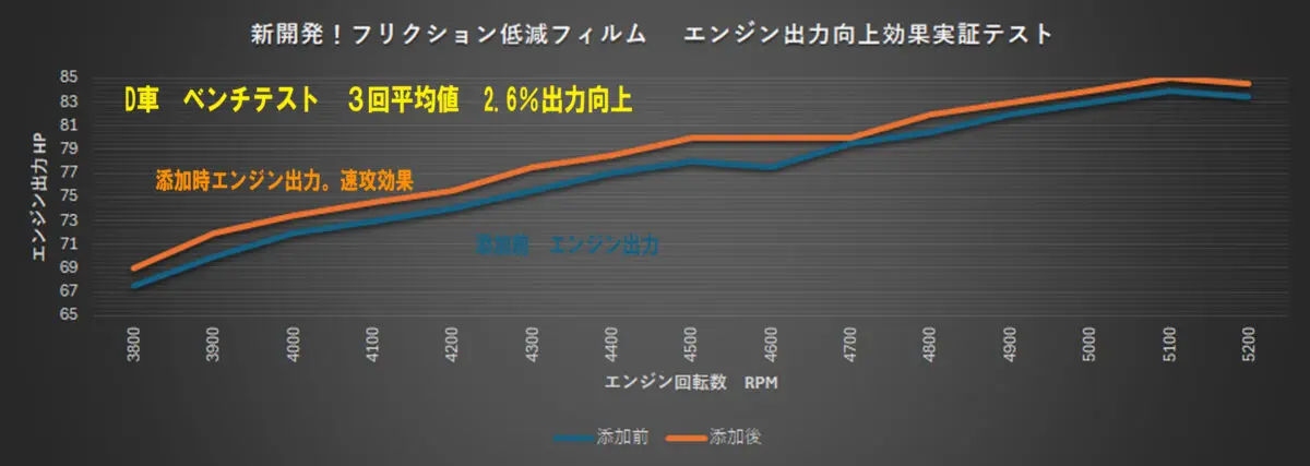 つまりフューエルポーション3は、単にエンジン内部を洗浄するのではなく、排気側の触媒やサイレンサー内部までもキレイにし、さらに防錆フィルムによりエンジン各部の腐食までも防止。その結果、エンジン内のフリクションが低減することでパワーとトルクが向上し、ひいては燃費の向上にもつながるのだ。