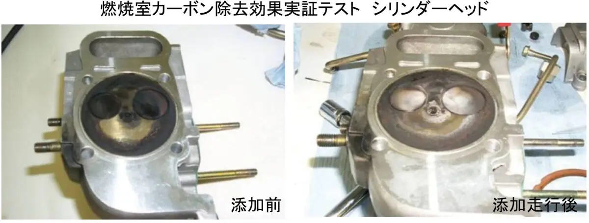 そこで、このCEO2(酸化セリウム)が排気系統である、EGR排気弁、触媒、サイレンサーまで従来品では洗浄が困難だった排気系を洗浄しカーボンを除去するため、燃費とパワーが向上するのだ。