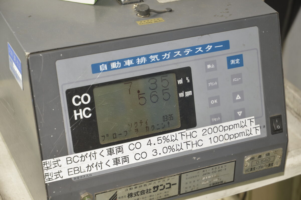また、フューエルポーション3は吸気系から排気系までエンジンの燃焼行程すべてにおいて効果が認められているので、排気ガス測定機によるチェックも行った。