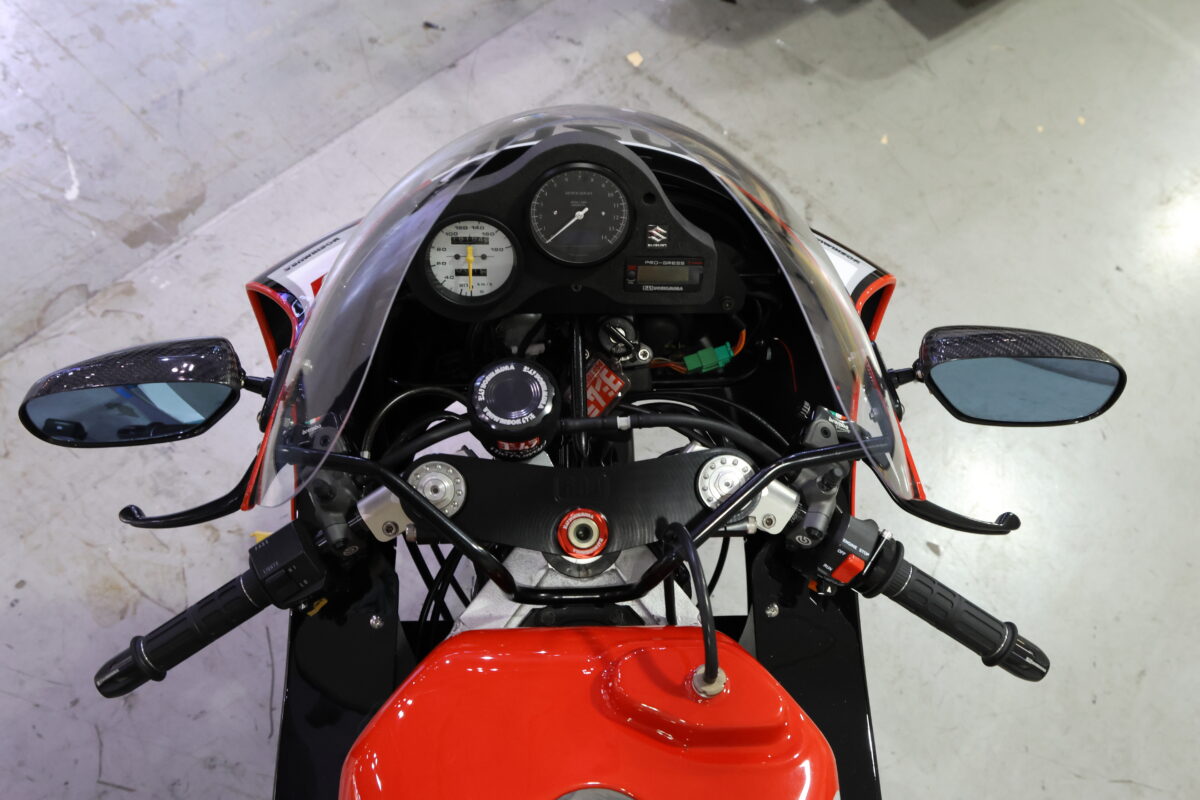中心となるのは、政府認証を取得した「機械曲 R-11Sq チタンサイクロン」マフラー。スリップオンとフルエキゾーストがランナップされているが、注目はフルエキだ。レースでの経験と知識をもとに造りあげたマフラーは純正比約58%にもおよぶ軽量化(重量8.6kg)を実現。美しさを力強さを両立した造形は、HAYABUSAのスタイルを一層スポーティにしてくれる。サウンドもノーマルのくぐもったような音質から一変し、クリアでレーシー。
