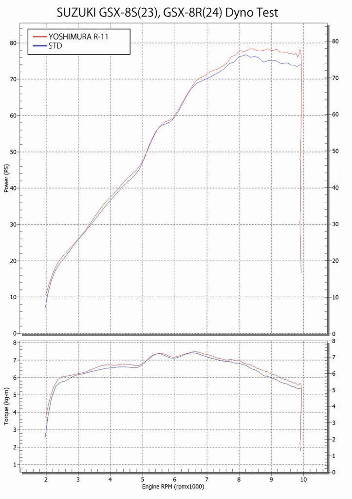 だからヨシムラでは、パワーそのものはもちろん、パワー特性と「感じ方」の違いがハッキリ分かるマフラーを作る。ノーマルのショートマフラーを、サイレンサー別体としたのも同じ理由で、その狙いがはっきり分かるのが、今回のマフラーなのだ。もちろん、今後発売されるGSX-8T/8TTのマフラーを作る時も、このデータが生きてくる。