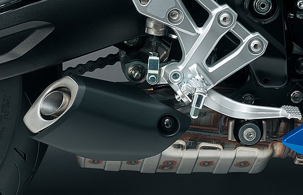 「GSX-8Rは低回転域からトルクが出ているし、中回転、高回転とつながりよく伸びがあるパワーフィーリングですね。マフラーも、規制を余裕もってクリアするくらいキッチリ消音されているし、排出ガスもクリーン。これは手強いな、と思いました」というのはマフラー開発担当の井藤龍典さん。