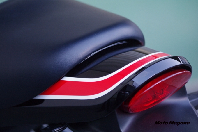 ジェネレーターカバーやフレームキャップなどアルミ素材のものは、通常版ではスレートグレーのところ、ブラックやレッドでアルマイト処理され統一感を出している。