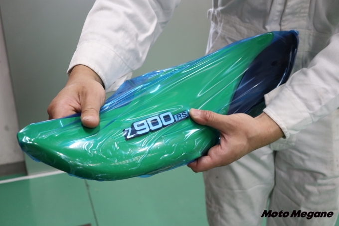 フューエルタンクとシートカウルのラインはAMAで活躍したZ1のグラフィックを再現。ビキニカウルは当時のZ1には付いていなかったため、今回のKITのために新規にデザインした。デザインがトータルで繋がりのあるようタンクに描かれているグラフィックに合わせ、カウルのホワイトのストライプの幅なども合わせられている。
