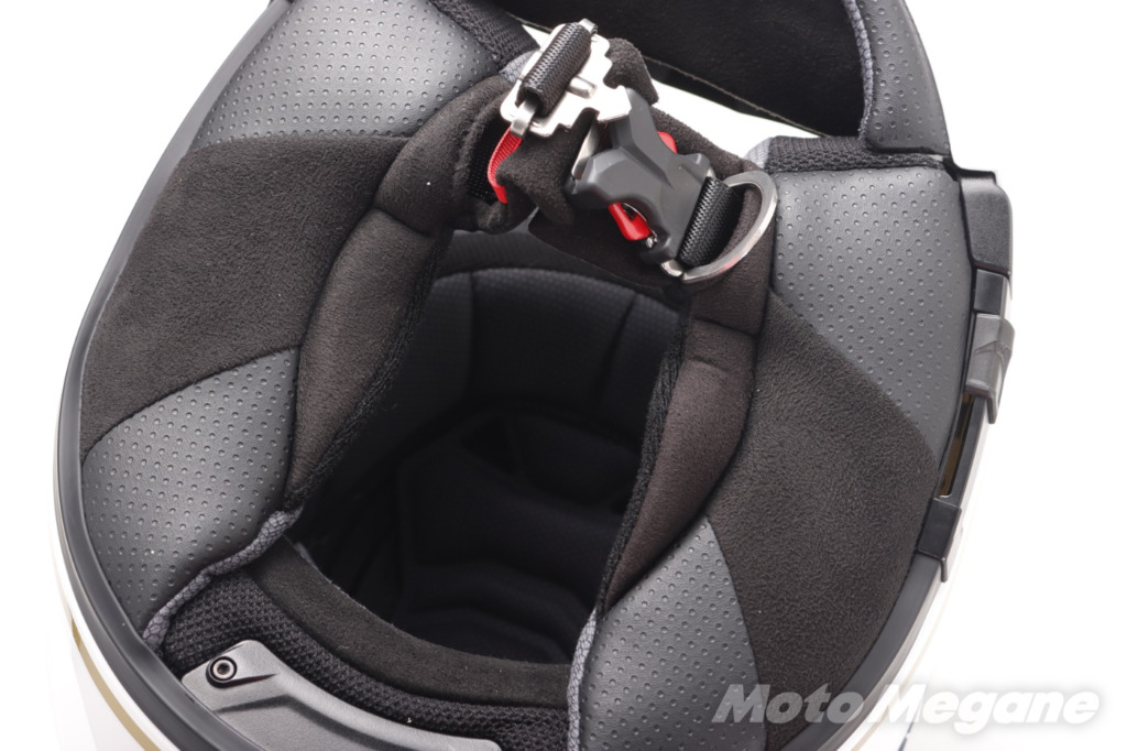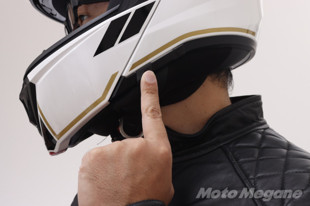 シールドがピタッと締まる感触とか、ベンチレーション開け締めの節度感、内装の肌触りに、フリップアップ動作時の剛性感、チンバーと帽体とのチリが段差なくしっかり合っている点など、そういった極々細かな部分に品質の高さを伺うことができた。バイクに乗る時には、常に頭に被っているし、肌にも直接触れるものだから、実はこういった細かな感覚的な部分がストレスになりやすい。