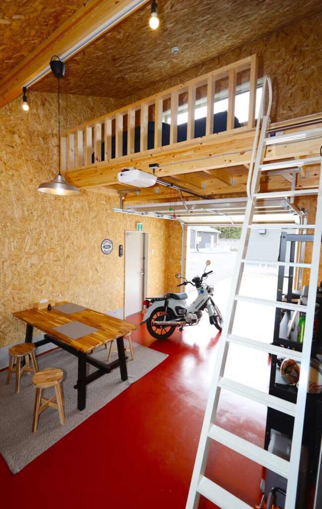 ガレージ内には、バイク数台を駐車できるほか、ロフト、テープルやキッチン、冷蔵庫や電子レンジ、IH調理具などの施設も空調設備が整備されていますので、年間を通じてご使用頂けます。