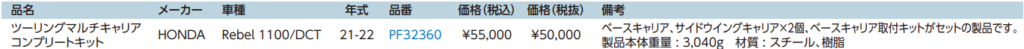 株式会社プロトは、バイク用パーツブランドプロフェストのRebel1100/DCT用ツーリングマルチキャリアを発売した。可倒式サイドウイングキャリアにより、大きなツーリングバッグやサドルバッグなど、シーンに合わせて様々なアイテムを運ぶことができる。タンデムシートと付け替えるだけで簡単に装着可能。価格は55,000円(税込)である。