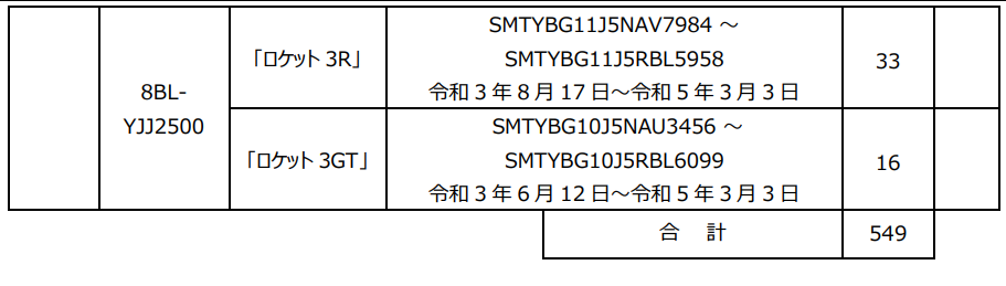 【リコール届出番号 外-3749】