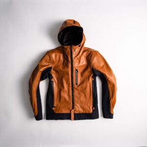 ソフトなゴートスキン にドライタッチの防風ストレッチ素材を組み合わせたフードスタイルのレザージャケットです。レザーの中でも軽量で柔軟性のあるゴートスキンを採用することで、身体へフィットしやすくなっており、長距離走行でも疲れにくいという特徴があります。また、内袖を防風ストレッチ素材に切り替えることで、運動性が向上しさらに着心地良く仕上がっています。脇の大型ファスナーの上部を開けるとエアーインテークとなり、背中にあるダクトを開くことで、ジャケット内のこもった空気を換気することができます。エアーインテークを使わない時はポケットとして使用出来ます。フードはバタつき防止機能を使用することで、走行中のストレスを軽減します。着心地や耐久性の高さから長時間の走行はもちろん、フードがあることで、カジュアルな印象になりますので街乗りがお好きな方にもおすすめの一着です。