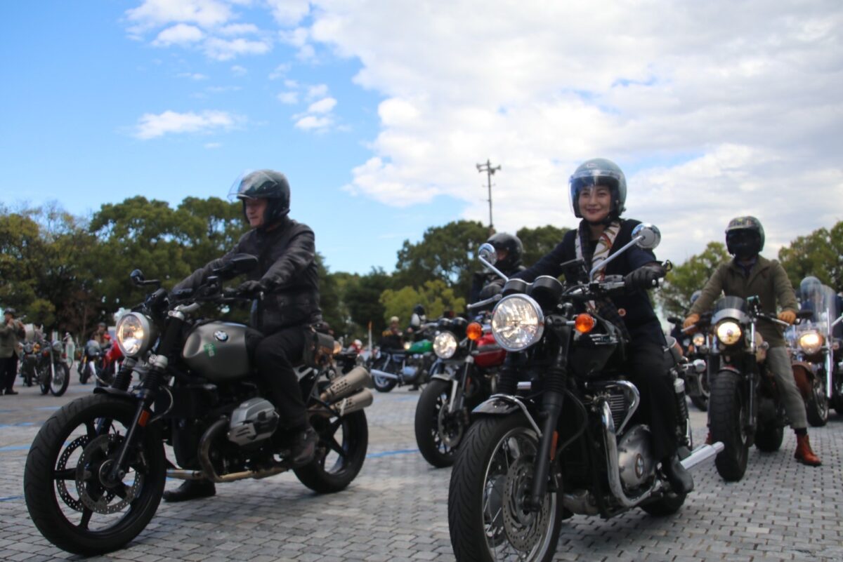 イベントのメインはやはりクラシカルな先導車、スーツ&ドレス姿のライダーによるフォーマルなパレードラン。
