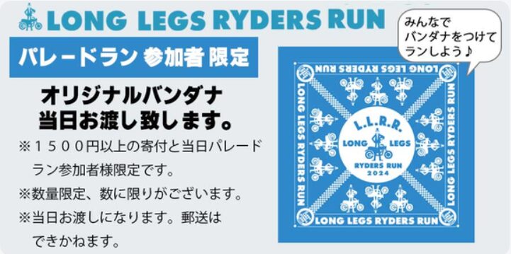 その思いから2022年に発足したチャリティーパレードランが『LONG LEGS RYDERS RUN(以下:LLRR)』だ。