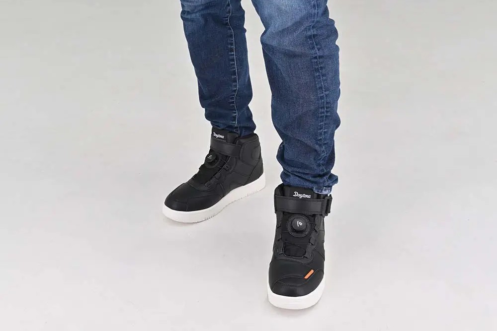 スニーカースタイルで街歩きからツーリングまで幅広く使える防水ライディングシューズ。リールシステムとアンクルベルトを採用し、容易な着脱と確実なホールド調整を可能としている。さらに、くるぶし部にプロテクターを内蔵し、安全性を高めている点が特徴である。