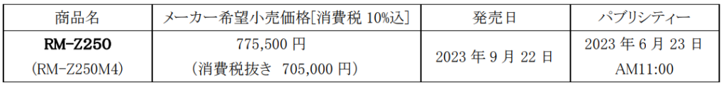 「RM-Z250」の2024年モデルを発売