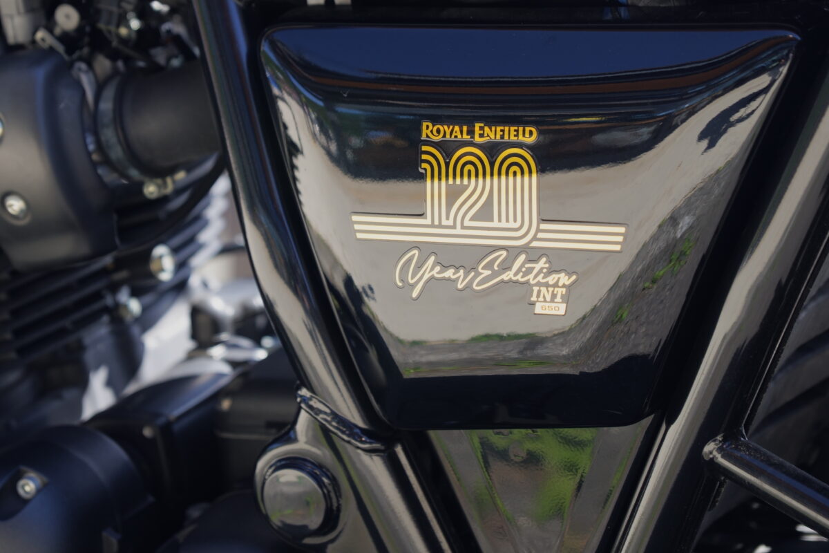 ロイヤルエンフィールド創業120周年モデル(リミテッドエディション)なので、シリアルナンバーが付いているところです。日本に14台くらい(?)しか入っていないらしく、プレミア感にひかれて購入しました。