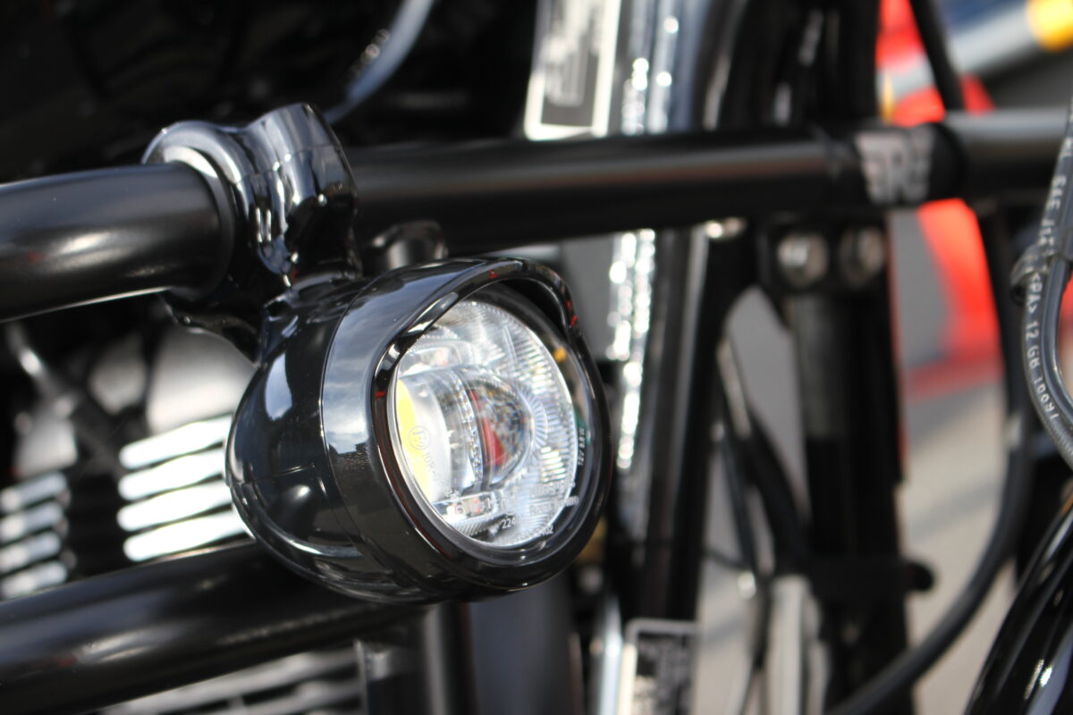 フォグランプはアメリカンポリスのイメージ。配線はエンジンガードの中に収納してスッキリさせています。