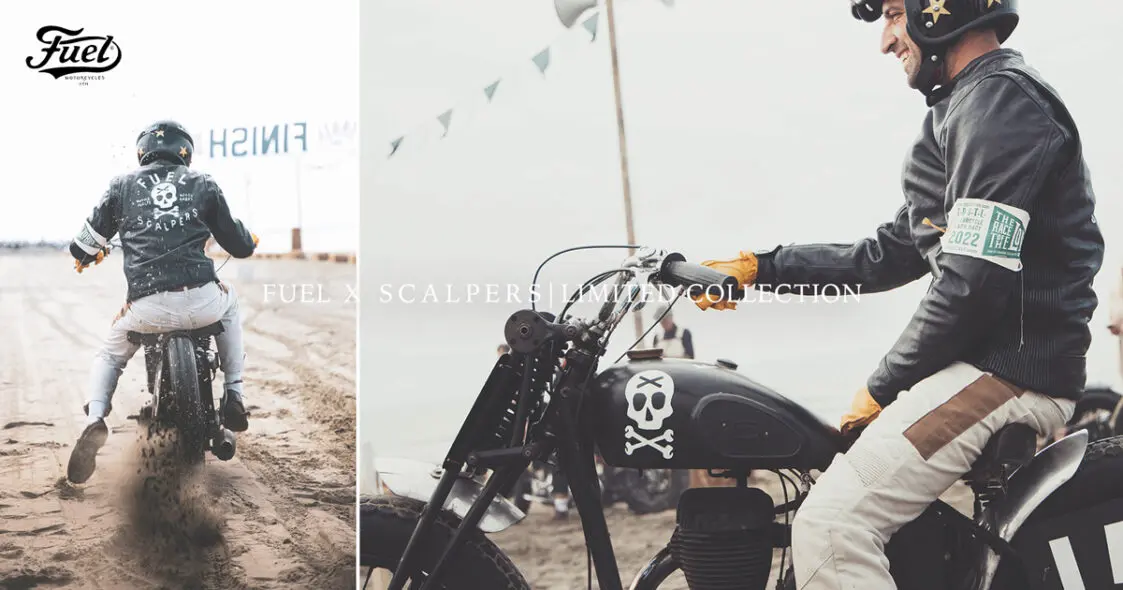 スペインに拠点を置き、ワールドワイドに展開するアパレルブランド「SCALPERS(スカルパーズ)」とFuel Motorcyclesがコラボ。50sのビーチレースにインスパイアされたクラシック×モダンなアイテムが多数リリースされました。そのうち一部のモデルがMotorimodaに入荷しました。