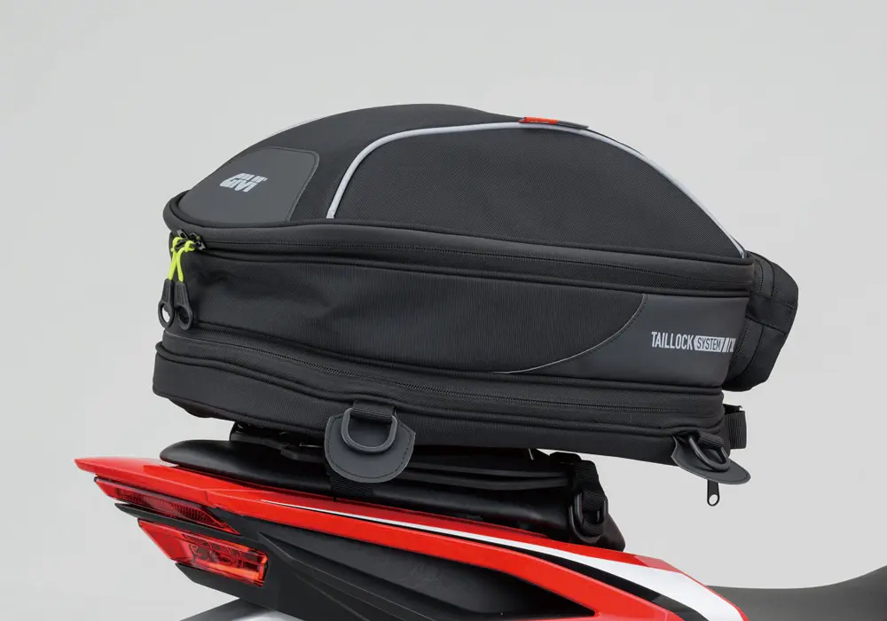 株式会社デイトナは、イタリア発オートバイ用品メーカーGIVI(ジビ)のテールロックバッグシリーズを発売した。別売のシートロックフランジと組み合わせて使用し、ワンタッチで簡単に脱着ができるアイテムである。バックパックとしても利用可能なTLB30は、25,300円。最大容量23LのTLB23は、26,400円。最大容量20LのTLB20は、22,000円。ダッフルバッグタイプのTLB18は、25,300円(いずれも税込)である。