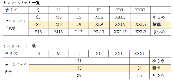 TYPE-Q センターパッド:各サイズ:6,600 円(税抜価格 6,000 円)