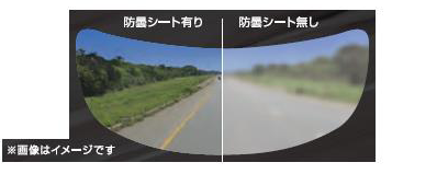 雨天や低温などシールドが曇りやすい状況下の走行時でも曇りを防ぎ、クリアな視界を確保する防曇シートを標準で装備。