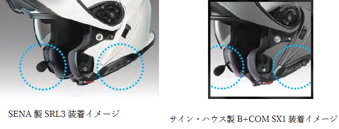※SRL3 は SENA、B+COM SX1 はサイン・ハウスの製品です。ヘルメットには付属していません。SRL3 および B+COM SX1 の販売、サービス、サポート等に関しては、それぞれSENA、サイン・ハウスへお問い合わせください。