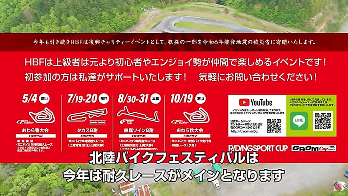 ワクワク、ドキドキが一杯の北陸バイクフェスティバル・ミニバイク耐久レース!たくさんの方が遊びに来てくれると嬉しいです。しんたろう炎の動画「北陸バイクフェスティバルHBF今年のミニバイクイベント!」でイメージを膨らませて参加してください。