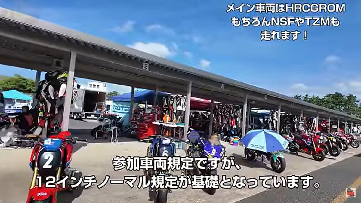 ミニバイクの参加規定は、12インチのノーマル車両が基本です。最近ではHRC グロムがメインになっています。HRC グロムカップ承認レースなので、迷ったら HRC グロムカップ仕様で出場して下さい。