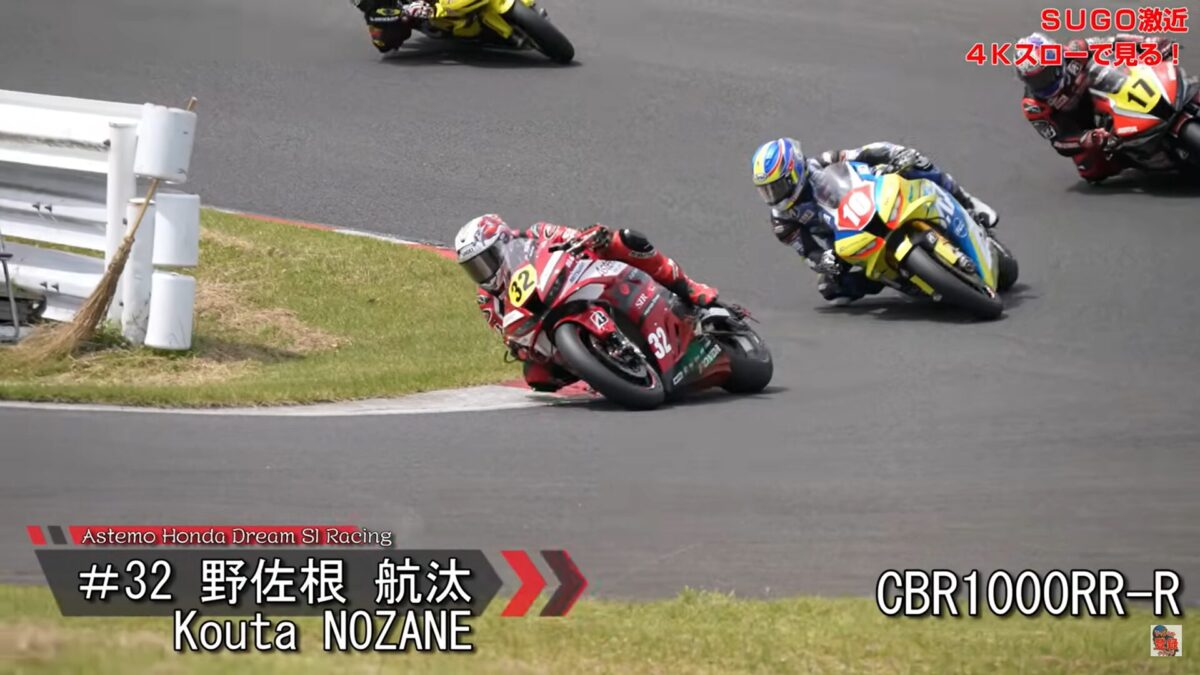 CBR勢の中でも輝きを放っているのが野佐根選手です。 マシンをCBRにチェンジして3戦目。扱いに慣れてきたのかファクトリーバイクの真後ろに迫っています。2020年のJSBチャンピオンですが、市販バイクでこの位置に着けるとは思いませんでした。