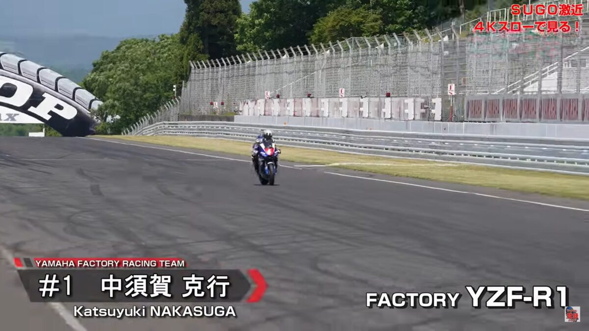 去年、中須賀選手に土を付けた得意なSUGOで、1分25秒360のコースレコードを叩き出しました。コーナリングでもスピードを重視し、自信満々に走っています。