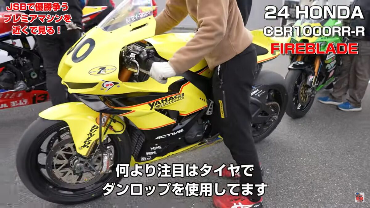長島哲太選手のCBR1000RR-Rは、黒船と同じ大注目のマシンです。マシンというよりは、ライダーが注目されていると言った方が正しいですね。高価なブレーキキャリパーには寒さ対策なのかフィンに蓋がされています。サスペンションはオーリンズ製ですが、最高級の製品だそうです。タイヤはダンロップを使用しているため「Dの一族の逆襲」などと呼ばれています。