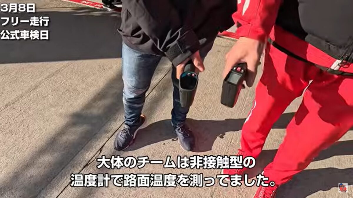 全日本ロードレース開幕戦SUZUKA 2&4レース。炎天下の開催であり、ほとんどのチームは非接触型の温度計で路面温度を測っていました。皆さんタイヤの温度に気を使っています。開幕戦ということで総合時間がふんだんに用意されているので、金曜日は無理せず、翌日の予選に向けてデータを取る走行枠になっていました。