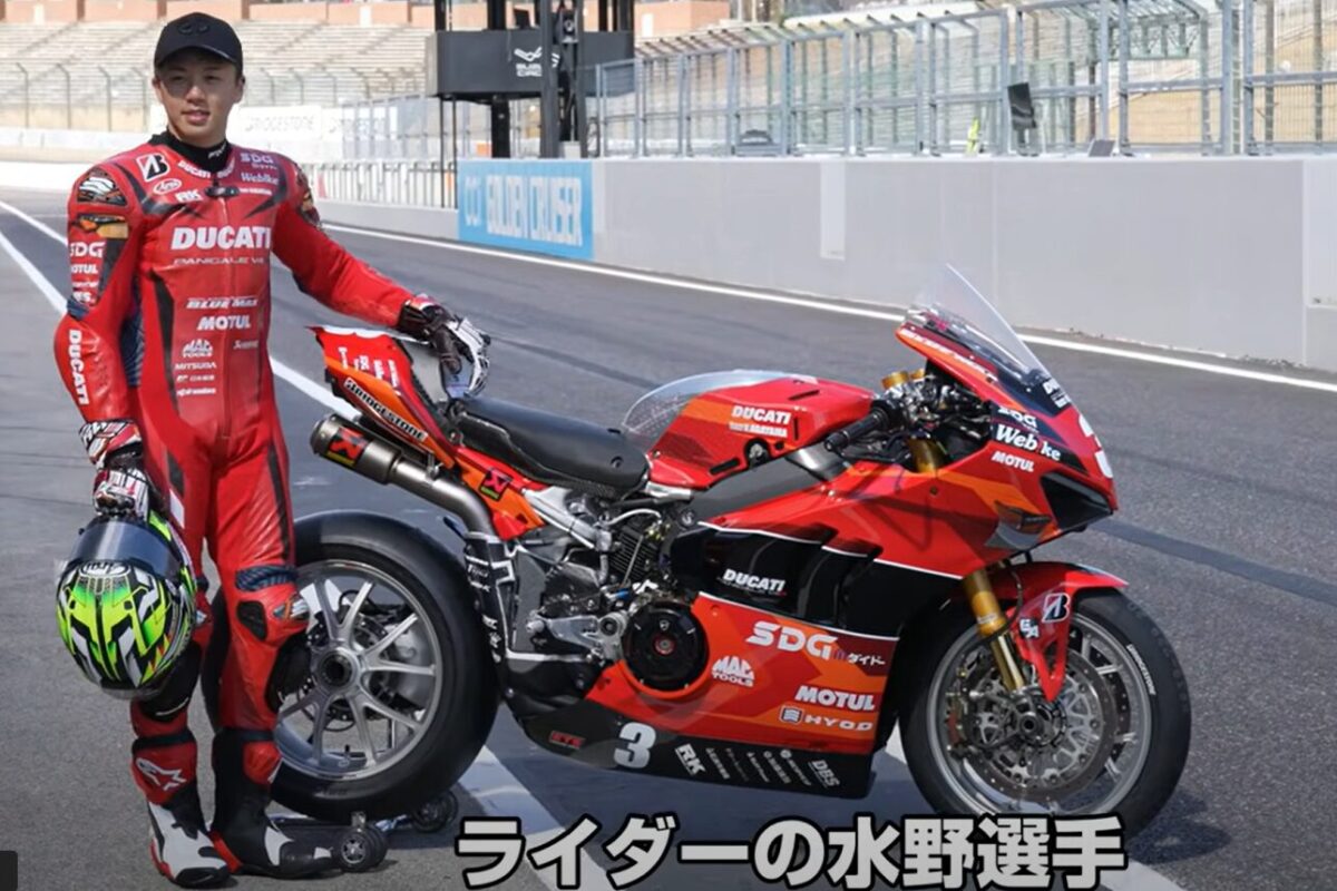 PanigareV4Rを操るのは、水野 涼選手(ゼッケン3)です。外車にはピレリ―などが装着されることが多いですが、ブリヂストンのタイヤを装着するなど、世界でも類を見ないパッケージに注目が集まりました。
