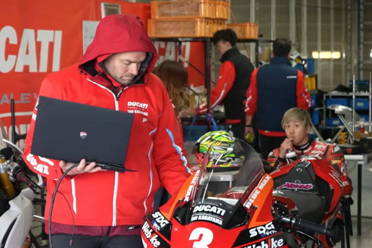 開幕戦となる鈴鹿大会以外の全日本のレースでは、カーボンニュートラル燃料が使われますが、それをレースにマッチさせるのは大変な作業だそうです。山積する問題を解決するために、 ドカティのイタリア人エンジニアがサポートに入っていました。
