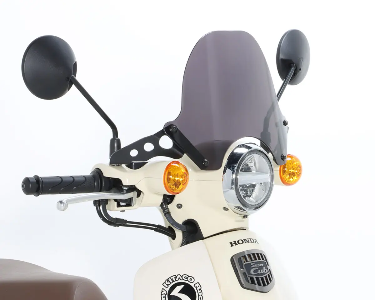 身体に当たる走行風を軽減できるエアロバイザーです。汎用のスモークタイプスクリーンを採用。