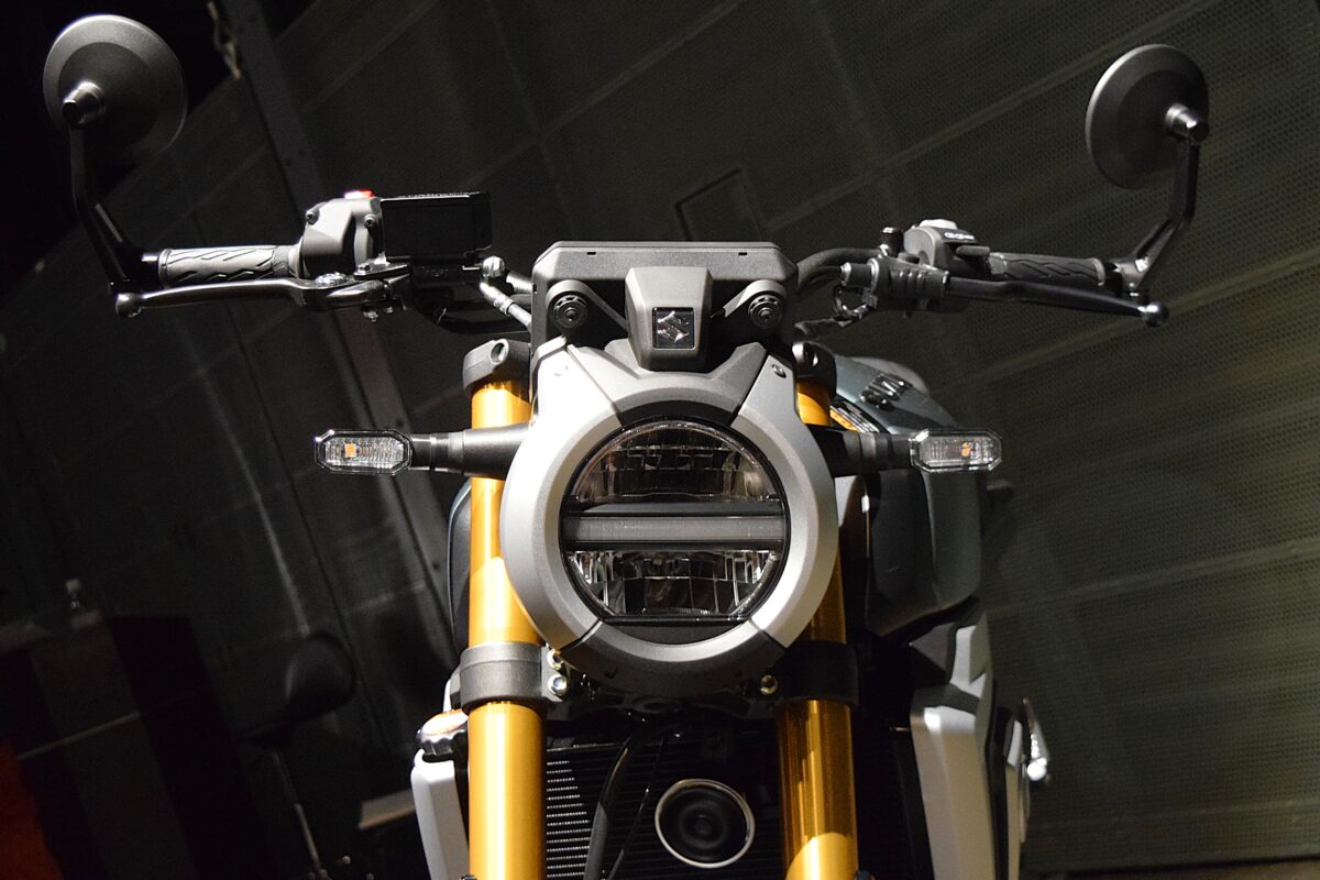 プロダクトコンセプトは、‟Retro Spirit,Next Generation Performance.“(懐かしさをまとい、明日へ駆ける)。過去のスズキの名車から発想を得たクラシックな雰囲気をまとったスタイリングと、現在の技術を注ぎ込み基本性能(走る・曲がる・止まる)を追求した、見て良し乗って良しのネオレトロバイクだ。古き良き街並みと近未来的な街並みが同居するこの横浜みなとみらいの赤レンガ倉庫が説明会の場に選ばれたのも納得である。