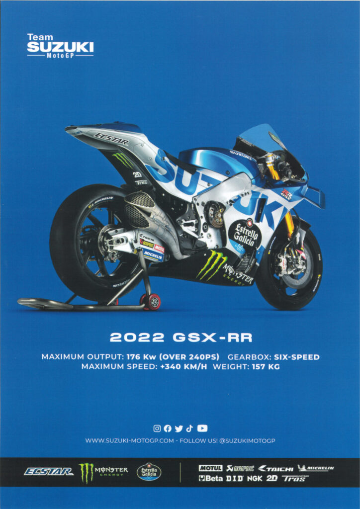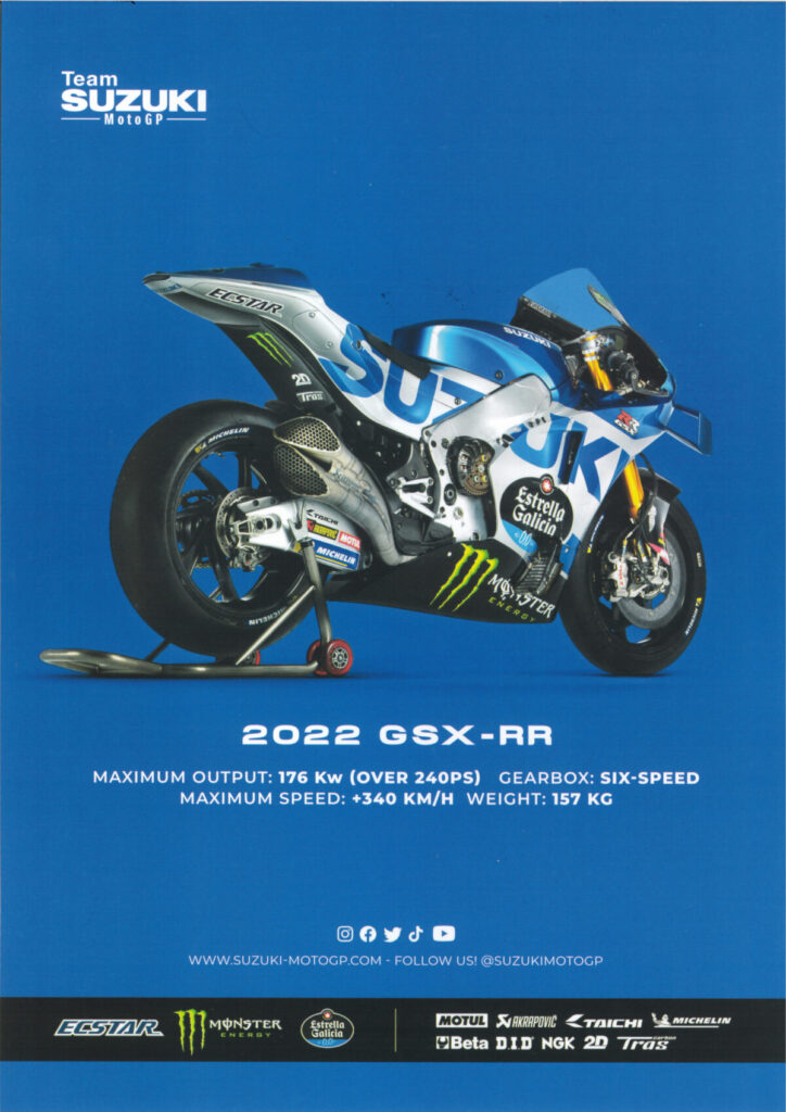残念ながらスズキはFIMロードレース世界選手権(MotoGP)への参戦とFIM世界耐久選手権(EWC)へのワークス参戦を、ともに2022年シーズンをもって終了することを決定しています。