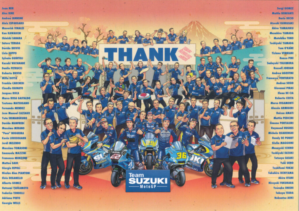 ④藤原らんかさんによるスズキチームのモトGPスタッフ イラストカード