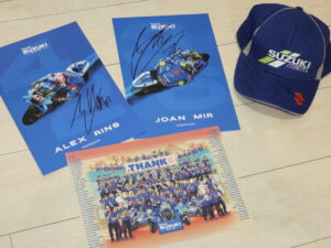 MotoGPクラスに参戦するチームスズキエクスターのアレックス・リンス選手とジョアン・ミル選手のサインいりグッズです!!