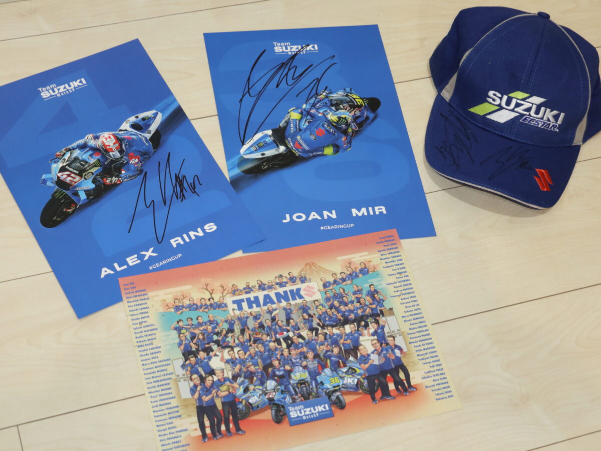 FIMロードレース世界選手権(MotoGP)へスズキから参戦した最後の両ライダーのサインとなれば、スズキファンはもとよりモトGPファンも必見のお宝グッズ! 注目のプレゼントは下記の4点です。